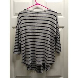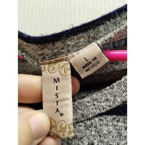 Misia Women's Size Large Navy Blue & Gray Striped 3/4 Sleeves Fuzzy Top