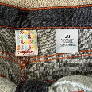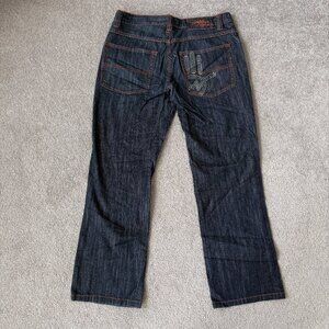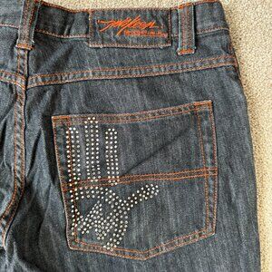 Miskeen Men's Bootcut Dark Wash Jeans with Crystal Hand Design Size 36