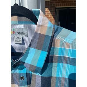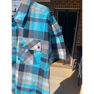 Miskeen Originals Men's Button Up Shirt Size 2XL Blue Plaid Cotton Short Sleeve