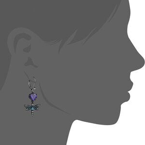 Add a playful pop to your jewelry collection with these mismatched drop earrings. Featuring a lovely purple CZ heart-shaped stone paired with a butterfly design decorated with delicate blue stone accents, they’re perfect for adding a touch of whimsy to any outfit. Crafted in hematite-tone metal with a sleek lever back closure, they’re comfortable and easy to wear. Great for dressing up casual looks or adding a fun statement to special occasions.