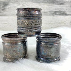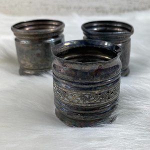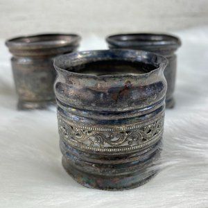 Two are etched with an intricate floral and leaf design while the third features a cut-out scrollwork design.