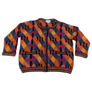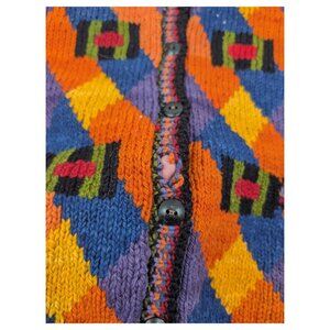Vintage-inspired Miso Healthy cardigan sweater with a 1990s grunge aesthetic. This women’s size M/L piece features a worn-in, distressed look that channels authentic 90s alternative fashion.
