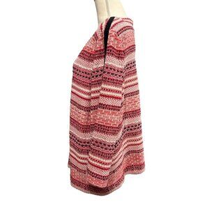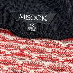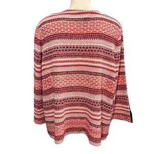 Misook 1X Sweater Blazer Zip Up Mixeid Pattern Striped Red White Artsy Office