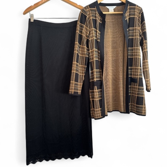 Misook 2PC Black Maxi Skirt & Plaid Cardigan Size Small