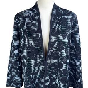 Misook Black & Blue Textured Rib Knit Animal Print Ottoman Cardigan Jacket