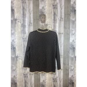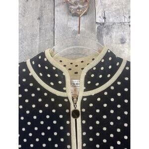Misook Black & Metallic Gold Polka Dot Full Zip Jacket Size Large.