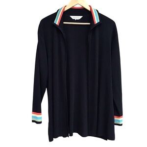 Misook Black Open Front Cardigan With Colorful Accents Size L