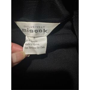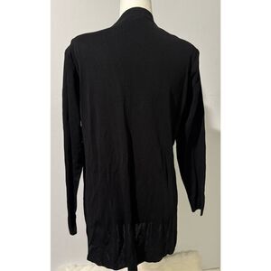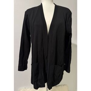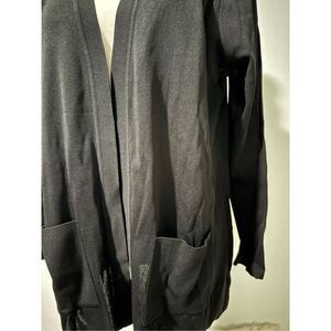 Misook black long open front sweater deep pockets shoulder pads size S no rips or stains