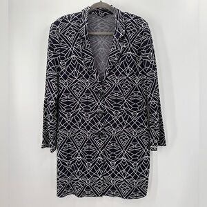 Misook Blue Pattern Long Knit Cardigan Blazer Jacket Size Large