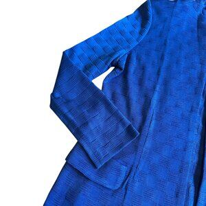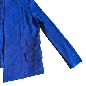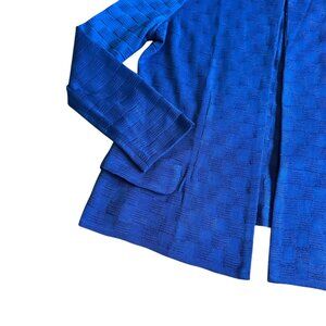 Misook Blue Textured Open-Front Cardigan Sweater Jacket Stretch Petite Medium