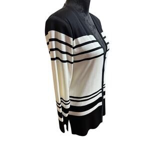 Misook Button Front Cardigan Black Ivory stripe Rhinestone detail classy light S