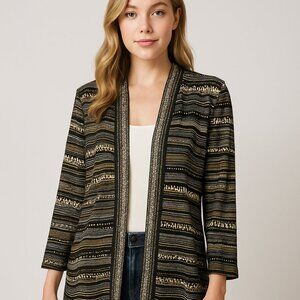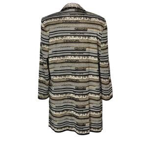 Misook Cardigan Duster Size Large Black Stripes Open Front Shimmer Work Dressy