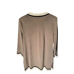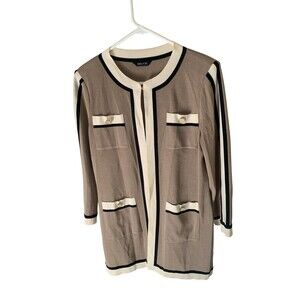 Misook Cardigan Sweater Womens Large Tan Black Cream Knit Open Front
