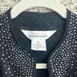 Misook Cardigan Sweater Women’s Small Black with Clear Crystal Rhinestone Studs