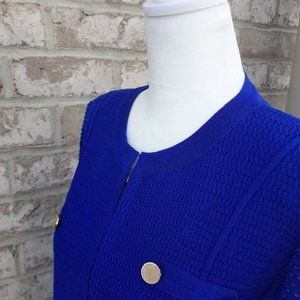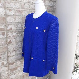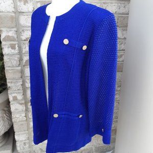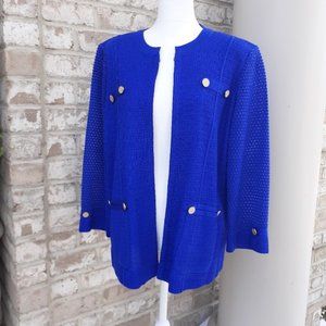 Misook Cobalt Blue Knit Jacket With Gold Buttons - Petite Large - PL