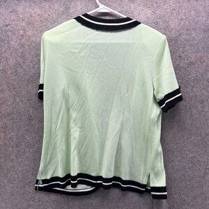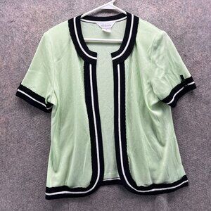 Misook Exclusively Cardigan Women Medium Mint Green Open Front Black White Trim