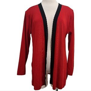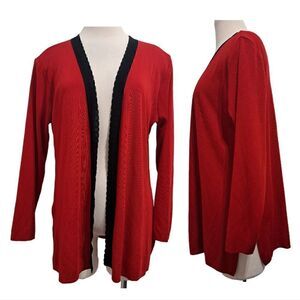 Misook Exclusively Open Front Cardigan Scalloped Trim No Size Tag Medium Red/Black