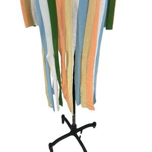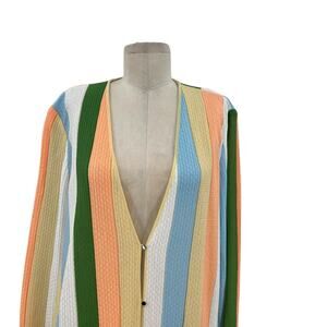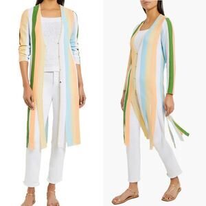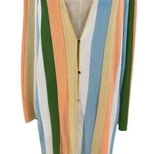 Misook Heritage Intarsia Knit Cardigan Sweater Striped Fringe Long Size XL
