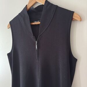 Misook Knit High V-Neck 1/4 Zip Sleeveless Top Black Size S