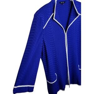 Misook Knit Jacket Cobalt Blue White Contrast Trim Pockets Size XL