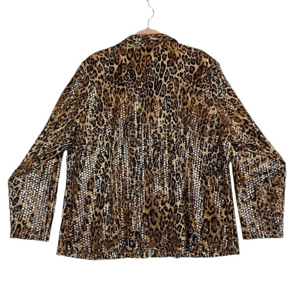 Misook Leopard Zip up Jacket Brown Animal Print Sequin