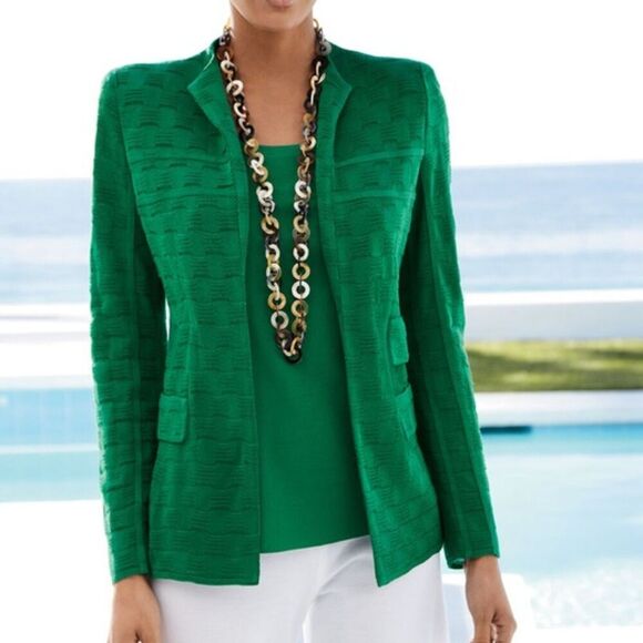 Misook Lilly Textured Jacket Cardigan Open Front Size Small Kelly Green