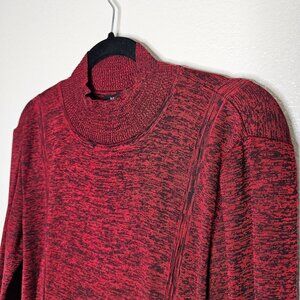 Misook M Red Black Knit Midi Dress Turtleneck Godet Modest Space Dye Office
