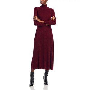Red and black spacedye turtleneck knit midi dress. A line. Long sleeve.