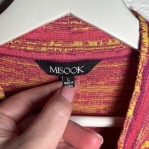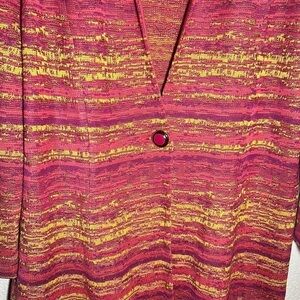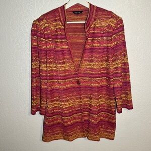 Misook Pink & Yellow One Button Knit Blazer 3/4 Sleeves Size Large