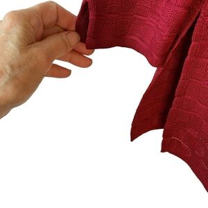 Misook Rapture Knit Jacket Oversized Red Textured Black Vegan Leather Trim Small