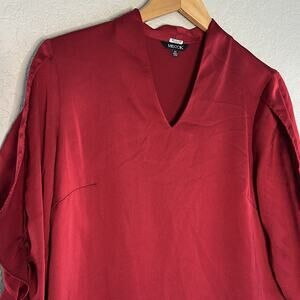 Misook Silky Burgundy Holiday Top Waterfall Sleeve V Neck Size XS 3/4 Sleeve