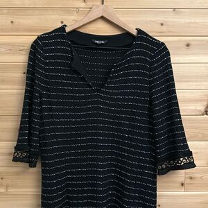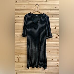 Misook Size Medium V Neck Striped Knit Knee Length Cocktail Dress LBD