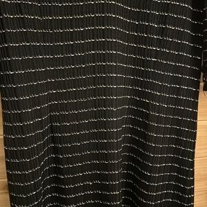 Black & White Striped Knit Knee Length Short Sleeve Dress With Fringe & Metal Circle Detail On Sleeve. Dress Is Not Lined