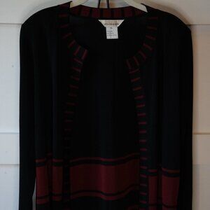 Misook, Striped Open Front Jacket Cardigan, Black, Maroon