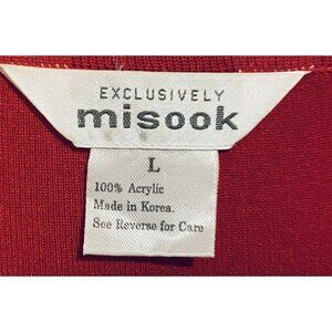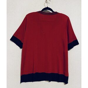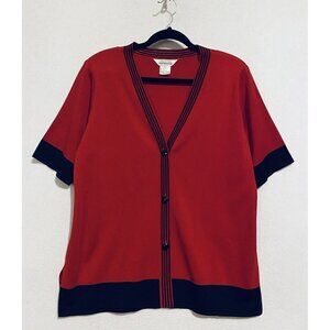 Misook Sweater Womens Large Red Black Short Sleeve Knit Button Front Cardigan