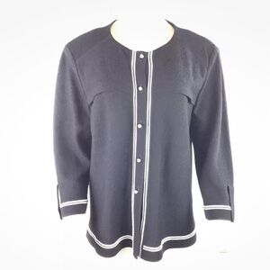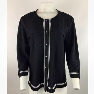 Misook Sz L Silver Button Cardigan Black White Acrylic Polyester Sailor Look