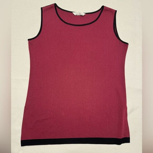 Misook Tank Top - Estimated Size Large, Burgundy & Black Sleeveless Knit Shell