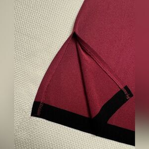 This Misook sleeveless knit tank top is a timeless and versatile piece, perfect for layering or wearing on its own. The rich burgundy color with black contrast trim gives it a sleek and sophisticated look. Made from Misook’s signature wrinkle-resistant knit fabric, this top is both stylish and easy to maintain. The black trim along the neckline and hemline adds a polished finish, making it a great addition to any wardrobe.