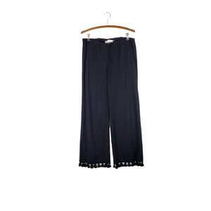 Misook Tassel Hem Pants Black Pull On Wide Leg Fringe Size Medium