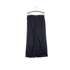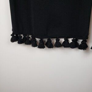 Misook black wide leg pull on fringe tassel hem pants womens Medium