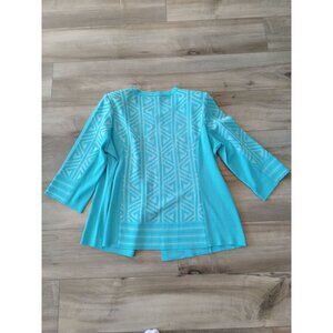 Misook Turquoise Geometric Open Front 3/4 Sleeves Cardingan XL