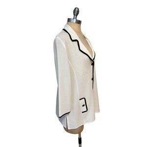 Misook White & Black Acrylic Blazer Jacket With 3/4 Sleeves Womens Large
