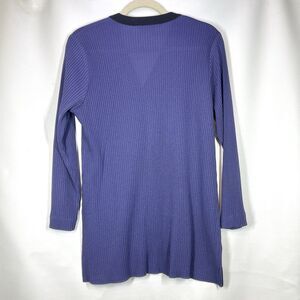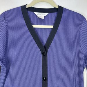 Misook Women Sz M Purple Ribbed Long Sleeve Button Front Cardigan Black Trim