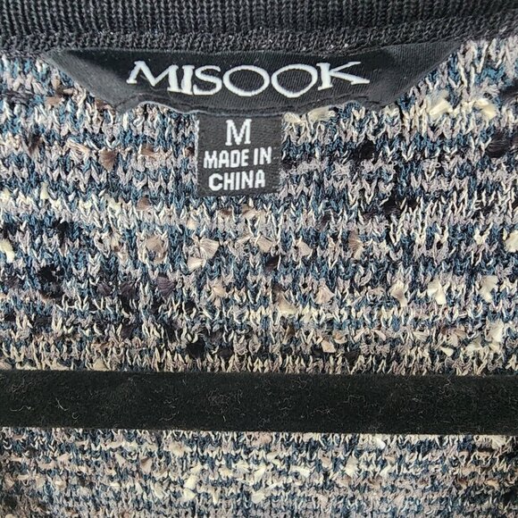 Misook Womens Black Teal Eyelash Tweed Knit Duster One Hook Cardigan Size Medium