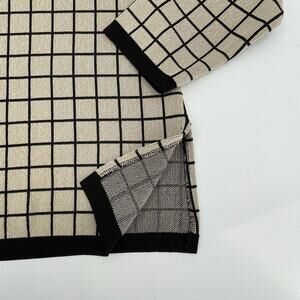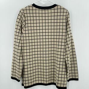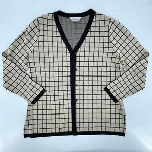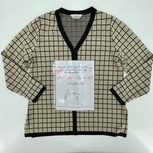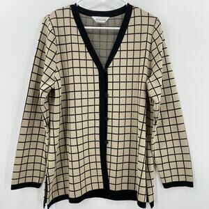 Misook Women's Cardigan Sweater, Sz. L Neutral Preppy Minimalist Windowpane