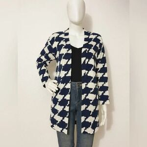 Misook Women’s Large Cardigan Knit Lightweight Blue White Houndstooth Elegant