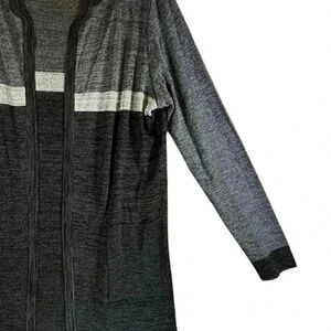 Misook Women’s Open Tri Color Gray Casual Front Pocket Cardigan Medium