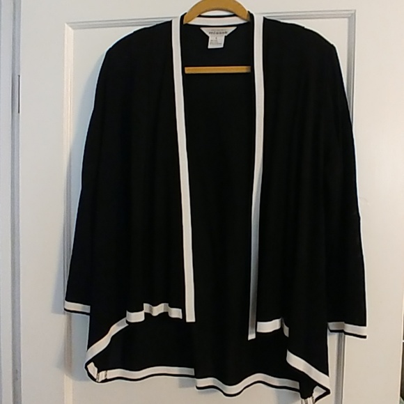 Like new Misook jacket with white trim and 3/4 sleeve. Slightly flared at the bottom gives it movement. Pair with Misook Skirt and tank I'm for sale in my closet for the perfect professional ensemble. Bundle all three for deep discount or make offer.