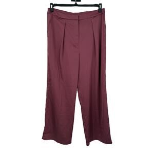 Misook pants high rise wide leg satin dark pink size Large L F1268