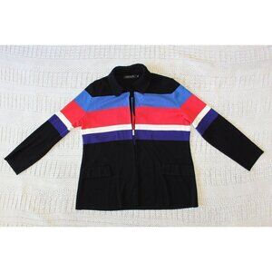 Misook women's Knit Cardigan striped long sleeve open front Size L multicolor